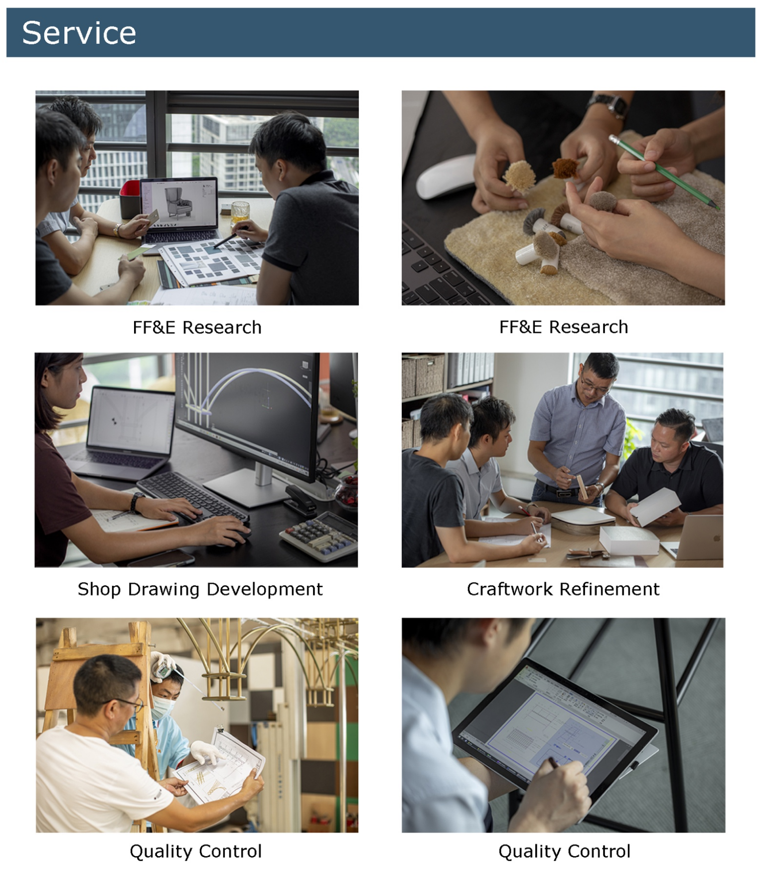 You provide the vision, we provide everything else. From prototyping to sourcing to manufacturing all the way to supply & delivery.Including - case goods, loose furniture, and flooring needs.